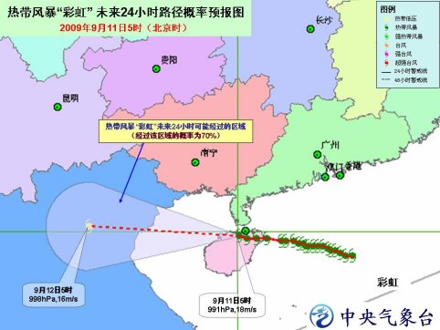 受“彩虹”影響,今天白天到夜間,北部灣、瓊州海峽、南海西北部、廣東中西部沿海、海南中北部、廣西沿海將有 6-8 級大風,部分海域陣風可達 9-10 級;海南中西部、雷州半島、廣西沿海將有大到暴雨,其中海南西北部的部分地區(qū)有大暴雨。