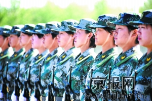 在女民兵方隊,隊員們訓(xùn)練歸來最愛開的一個玩笑,便是撩開“劉海兒”,欣賞各自腦門上那道黑白分明皮膚,互相打趣:“咱們可以給美白護膚產(chǎn)品作‘活廣告了’。”