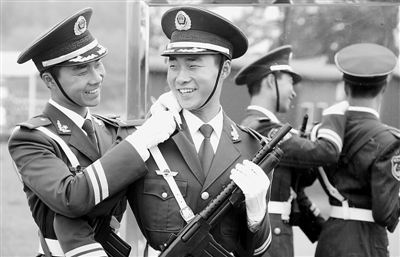 這個方隊60%是擁有雙學(xué)士學(xué)位的國防生,大多畢業(yè)于名牌大學(xué)。剛進(jìn)閱兵村時,他們坦言:選擇受閱,或?yàn)殚_闊眼界,或?yàn)榉e累資本,或?yàn)榉峙鋫理想單位,等等。“方隊要走得齊,首先人員的思想要齊;強(qiáng)化當(dāng)代革命軍人核心價值觀,才能提升學(xué)員的精氣神。”方隊政委趙建雄對“癥”開“方”。
