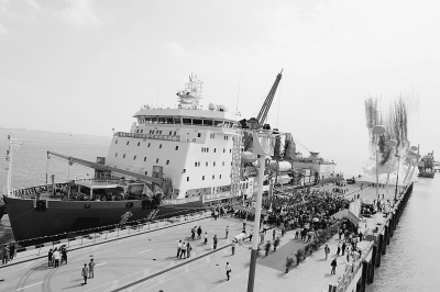 10月11日上午10時許,我國第26次南極科學(xué)考察隊乘坐“雪龍”號極地科考船,從上海浦東外高橋的中國極地考察國內(nèi)基地出發(fā),啟程前往南極。