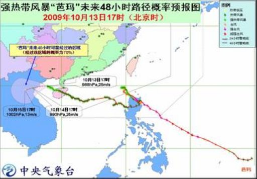 “芭瑪”的中心13日17時(shí)位于北部灣中部海面,就是北緯20.3度、東經(jīng)107.9度,中心附近最大風(fēng)力有10級(jí)(28米/秒),中心最低氣壓為988百帕。