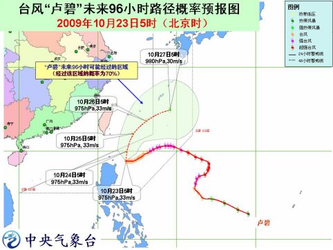 中新網(wǎng)10月23日電 中央氣象臺(tái)23日6時(shí)發(fā)布臺(tái)風(fēng)預(yù)報(bào):今年第20號(hào)臺(tái)風(fēng)“盧碧”的中心23日5時(shí)位于菲律賓馬尼拉北偏東方大約530公里的西北太平洋洋面上,就是北緯18.8度、東經(jīng)123.6度,中心附近最大風(fēng)力有12級(jí)(33米/秒),中心最低氣壓為975百帕。