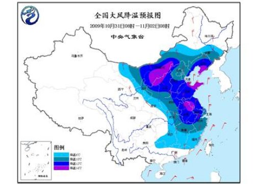 上述地區(qū)的氣溫也將先后下降8~10℃,其中,內(nèi)蒙古中部、山西北部、河北南部、遼寧大部、山東、江蘇、安徽等地的部分地區(qū)降溫可達(dá)12~14℃。