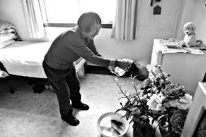 四季青敬老院一共住有480位老人,大多數是雙人間,有的住單間。在每位老人的房間里,都裝有一個圓形的按鈕,上邊標注著高中低三個檔位,老人可以擰動圓鈕,自行調節(jié)溫度!袄先说姆块g最高能調到25℃。”劉院長說。