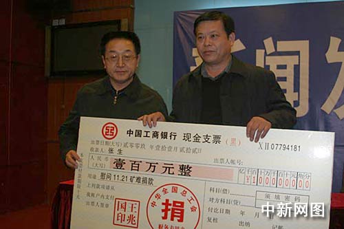 中新網(wǎng)鶴崗11月22日電 (記者 吳兆飛)中華全國總工會22日向鶴崗礦難遇難礦工家屬捐贈100萬元,中華全國總工會副主席、書記處書記張鳴起在捐贈儀式上還呼吁重視生產(chǎn)安全。此外,黑龍江和鶴崗的工會部門也同時分別捐贈了50萬元和10萬元。