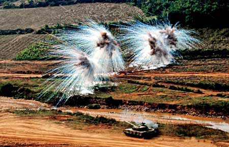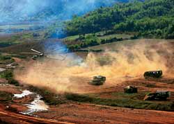 10月中下旬,代號為“前鋒—2009”基本戰(zhàn)役軍團聯(lián)合演習在濟南軍區(qū)某合同戰(zhàn)術(shù)訓練基地揭開戰(zhàn)幕。