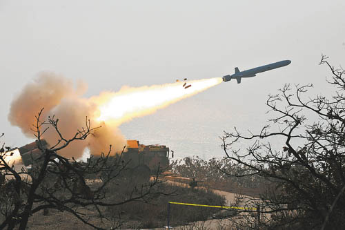 遼東海岸一個偏僻的山坳里,隨著指揮員“5、4、3、2、1、發(fā)射!”一連串指令的發(fā)出,某新型導(dǎo)彈噴射著烈焰撕破?,撲向數(shù)百公里外的“敵艦”。