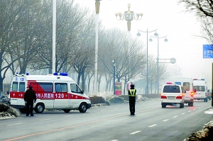 9時許,法院周邊進行了交通管制,押送黃松有的囚車在十幾輛警車的護送下駛出法院,返回北京。