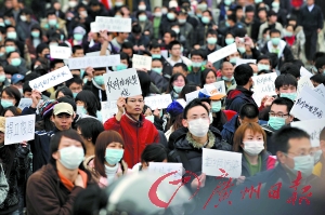 昨日下午1時(shí)許,空中不時(shí)飄灑著細(xì)雨,高明市民劉先生冒雨走在人群中!拔铱吹接薪M織者說24日將舉行這個(gè)活動(dòng),于是我便報(bào)了名。”有網(wǎng)友在論壇上透露,通過論壇信件等各種方式報(bào)名的市民已經(jīng)達(dá)到數(shù)百人的規(guī)模。
