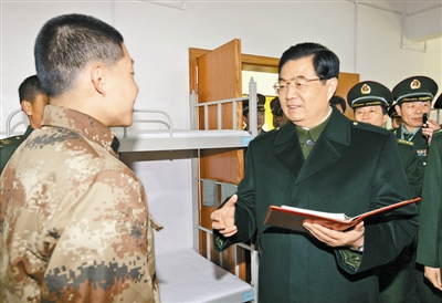 胡錦濤勉勵(lì)他在部隊(duì)學(xué)習(xí)、訓(xùn)練中取得優(yōu)異成績。