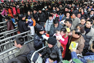 據(jù)介紹,從2月6日起,進(jìn)入春運(yùn)客流高峰期,西站開行臨客列車34列,是進(jìn)入春運(yùn)以來開行臨客列車最多的一天。同時(shí),西站單日上下車旅客將超過31萬(wàn)人,其中上車旅客將達(dá)到18萬(wàn)人,下車旅客達(dá)到13萬(wàn)人。
