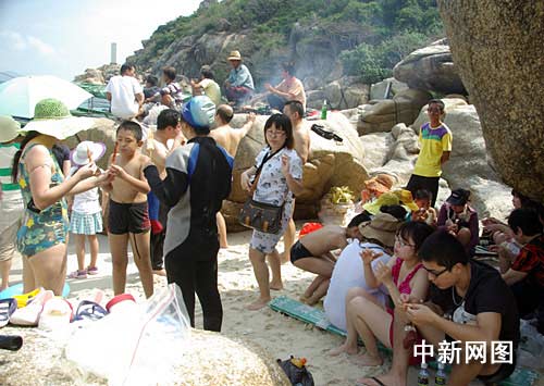 2月4日上午,執(zhí)法人員接到舉報(bào),三亞亞龍灣海域附近的百福灣每天都有數(shù)百人前去潛水、海底觀光。但是,等到聯(lián)合執(zhí)法人員趕到時(shí),偌大的海灘上只有五六十人在海邊淺水區(qū)或游泳、拍照、或燒烤等,潛水、海底觀光的一個也沒有發(fā)現(xiàn),除了岸邊的礁石上有數(shù)十個潛水呼吸用的“吸嘴”外,連潛水必備的器材一套也沒有發(fā)現(xiàn)。