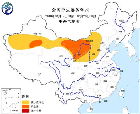 受蒙古氣旋和冷空氣影響,19日08時至20日08時,南疆盆地、甘肅中西部、內(nèi)蒙古中西部、寧夏、陜西中北部、華北中西部等地有沙塵天氣,其中,南疆盆地東部、甘肅中西部偏北地區(qū)、內(nèi)蒙古西部、寧夏北部、陜西西北部等地的部分地區(qū)有沙塵暴,上述地區(qū)并有5~6級偏北風(fēng),陣風(fēng)風(fēng)力可達(dá)7~8級。