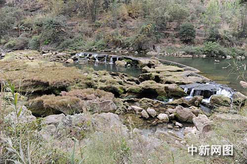 瀑布下的水潭,裸露出在河床底部的石頭,順著水流的方向一眼望去,不少石頭上竟長滿了青草。記者從景區(qū)工作人員處獲悉,受這次大干旱的影響,黃果樹瀑布的上游來水減少,使瀑布景觀漸受影響。到了3月,本是汛期的當(dāng)?shù)貐s無雨水可降,大瀑布現(xiàn)每天依靠水庫閘壩調(diào)節(jié)維持景觀。
