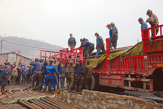 在救援現(xiàn)場(chǎng)記者看到,大批搶險(xiǎn)物資已經(jīng)運(yùn)抵煤礦風(fēng)井口等待投入使用,搶險(xiǎn)隊(duì)員正緊張地從車上卸下水泵、管道、電纜等設(shè)施并進(jìn)行安裝,40多名醫(yī)護(hù)人員和20多輛救護(hù)車現(xiàn)場(chǎng)待命,指揮部工作人員一次又一次論證救援方案、修正正在實(shí)施的救援措施。