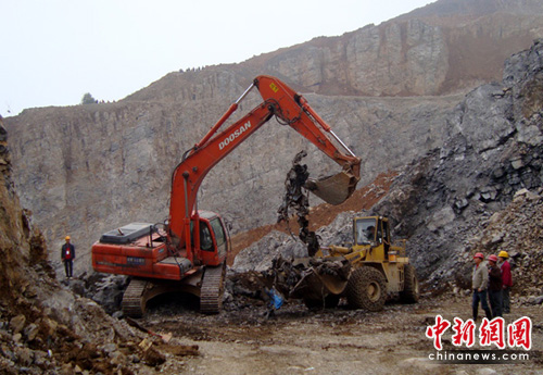 記者在順江采石場救援看到,救援現(xiàn)場濃霧彌漫,最低時(shí),能見度不足10米,但凌晨挖掘出的5輛汽車殘骸不得不讓10多臺(tái)挖掘機(jī)加緊工作。16:30分許,在1號(hào)通道左側(cè)前下方,挖掘機(jī)師傅徐斌正在挖土,突然,一個(gè)人從泥石堆里滾落出來!翱靵,有人!甭牭胶奥,消防、武警等救援人員迅速趕到現(xiàn)場,現(xiàn)場所有作業(yè)的機(jī)械全部停了下來,山谷中一片寂靜,隨后又一名遇難者被發(fā)現(xiàn),兩名遇難者均在搜救犬定位范圍內(nèi)。
