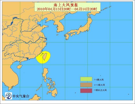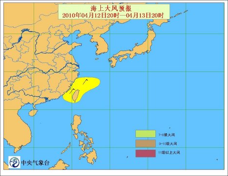 中新網(wǎng)4月12日電 中央氣象臺12日18時繼續(xù)發(fā)布海上大風預報:4月12日下午2時,渤海、黃海北部和和中部海域、東海北部海域出現(xiàn)了5~6級、陣風7~8級的西北風;東海南部偏東海域、臺灣以東洋面出現(xiàn)了5~7級西南風;南海西北部海域、北部灣出現(xiàn)了5~6級偏南風。黃海大部海域、東海西部海域、臺灣海峽、南海西北部海域的能見度不足10公里。其他海域天氣海況條件較好。
