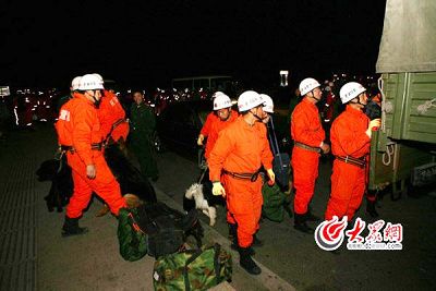 4月14日22時30分,山東消防總隊接到公安部消防局趕赴青海玉樹開展地震救援的命令后,已經(jīng)集結(jié)待命的我省第一批地震救援消防官兵立即趕赴機場,于15日凌晨0時40分乘坐山東航空公司SC901次航班從濟南遙墻機場起飛,在3時15分到達青海西寧機場。