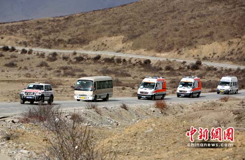 4月16日凌晨4:30分左右,車(chē)隊(duì)終于抵達(dá)四川最遠(yuǎn)的縣城石渠縣,休整半小時(shí)后,車(chē)隊(duì)出發(fā)離開(kāi)四川趕往青海省玉樹(shù)。經(jīng)過(guò)1200余公里,40小時(shí)的長(zhǎng)途跋涉,醫(yī)療救援車(chē)隊(duì)終于在16日早晨7時(shí)左右平安抵達(dá)青海省玉樹(shù)地震重災(zāi)區(qū)。