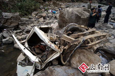 4月20日13時30許,華坪縣永興鄉(xiāng)思木村發(fā)生一起重大交通事故,寧蒗縣跑馬坪鄉(xiāng)一輛藍箭低速載貨汽車,載著該鄉(xiāng)23名村民從華坪縣永興鄉(xiāng)思木村駛往寧蒗縣跑馬坪鄉(xiāng),在永(興)跑(馬坪)線K18+700米處翻入100米高的懸崖,事故共造成14人死亡,1人重傷,3人輕傷。所有搭載人員和駕駛人均系寧蒗縣跑馬坪鄉(xiāng)人。