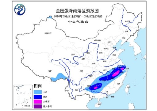 中新網(wǎng)5月21日電 中央氣象臺21日06時繼續(xù)發(fā)布暴雨藍(lán)色預(yù)警:預(yù)計,21日08時到22日08時,湖北東南部、安徽南部、江蘇南部、上海、浙江中北部、江西中北部、湖南、貴州東部和南部、廣西中北部以及云南西北部等地有大到暴雨,局部地區(qū)有大暴雨。