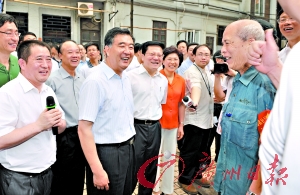 汪洋邊走邊看,認真聽取介紹,要求廣州市總結獵德村改造的好經(jīng)驗好做法,加快推進城中村和舊城區(qū)改造。