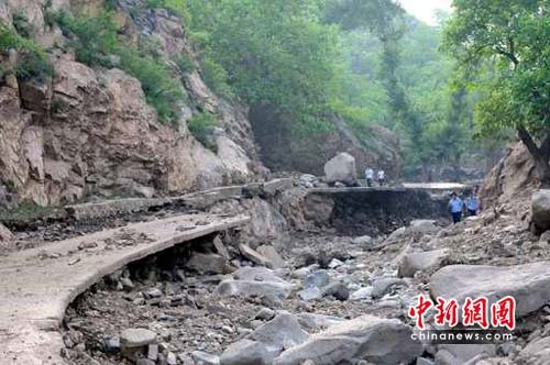 據(jù)介紹,13日晚20時(shí)許,淶水縣九龍鎮(zhèn)突降百年不遇特大暴雨,并伴有大風(fēng)冰雹,頃刻間,山洪裹著巨石、泥漿呼嘯而下,席卷了九龍鎮(zhèn)沿河道的六個(gè)村莊,致使嶺南臺、莊里、莊頭、高鋪、柏林城、南莊六個(gè)村受災(zāi)嚴(yán)重。據(jù)初步估算,受災(zāi)人口3100多人、牲畜2000多頭(只),倒塌損壞房屋499間、橋梁5座、車輛31輛,毀壞道路10.7公里、耕地1312畝、樹木16925棵,另有兩人失蹤,直接經(jīng)濟(jì)損失達(dá)8197.8萬元。