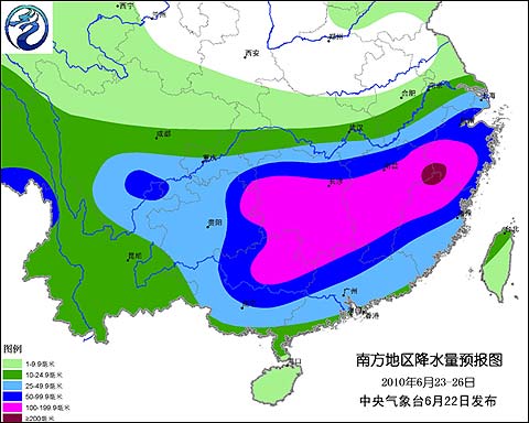 預(yù)計(jì)23日至26日,江淮、江南、華南大部以及西南地區(qū)東部等地又將出現(xiàn)一次強(qiáng)降雨過程。貴州東部、湖南、江西、浙江、福建、廣西、廣東北部有大到暴雨,局部地區(qū)有大暴雨,并將伴有短時(shí)雷雨大風(fēng)等強(qiáng)對(duì)流天氣;過程降雨量有50-120毫米,局部地區(qū)可達(dá)150-260毫米。湖南、江西、福建、廣西等地的汛情將進(jìn)一步發(fā)展,建議各地、各有關(guān)部門及時(shí)采取措施,加強(qiáng)防范區(qū)域性洪澇災(zāi)害和嚴(yán)重次生災(zāi)害。