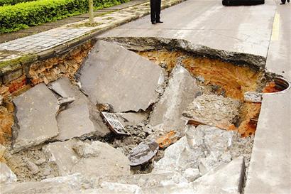 而在附近一工廠值班的陳先生說,事發(fā)時,整個值班室都在顫抖。據(jù)他介紹,橫一路在開發(fā)區(qū)投入使用已有10余年,“可能是最近幾天下雨,路面地下淘空了,才突然下陷。”