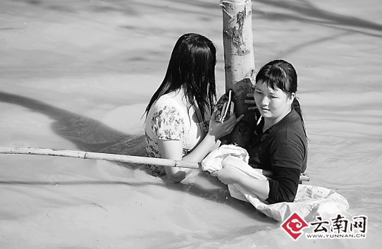 水中,許多孩子正卷起褲腳在玩耍,完全不知道這場災(zāi)害的后果。據(jù)大龍井村黨小組書記秦萬福說,此次遭遇的暴雨是百年難遇的,村里面80多歲的老人都是從來未遇見過。昨日上午9時,聽說附近的龍泉水庫有可能決堤后,整個村寨近1500多名男女老少來不及做任何事情,在村干部的組織下,用摩托車等能派上用場的車輛,趕緊把村民撤離到了山頂上。