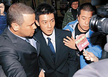 陳冠希在當?shù)貢r間早上約10時左右,穿一身黑色西裝出庭。他在加國的媽媽、經(jīng)理人及多個保安陪同旁聽。進入法庭期間,有一個身形龐大的男子,惡形惡相指令原本坐在頭一排的傳媒讓座給他們,加上聘請大批保安在法庭外把守,顯得霸氣十足。