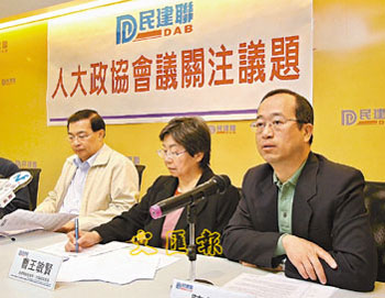 香港的全國政協(xié)委員及人大代表2日會陸續(xù)啟程出發(fā),參與在北京舉行的兩會。來自民建聯(lián)的全國政協(xié)及人大代表,計劃在這次兩會期間分別以建議和提案的方式,提出17項建議,其中主要集中于與珠三角融合,CEPA合作,以及推動內(nèi)地與香港金融合作等問題。自由黨4名全國政協(xié)委員也在1日公布已向全國政協(xié)提交的11份提案,建議加強和完善內(nèi)地與香港在金融、旅游、創(chuàng)意產(chǎn)業(yè),以及物流運輸?shù)确矫娴暮献鳌?/p>