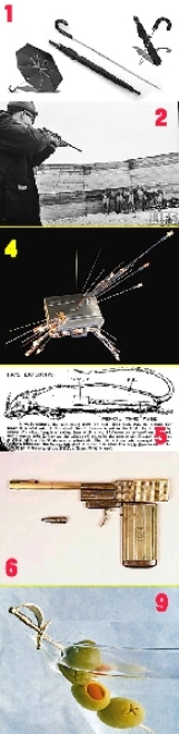 毒雨傘:1978年9月保加利亞異見作家馬爾科夫(Georgi Markov),在倫敦滑鐵盧橋被人用雨傘戳了一下大腿,四天后中毒逝世。事后證實,KGB利用雨傘制造無聲手槍,發(fā)射致命的蓖麻毒素。