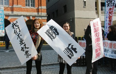 每月加班100個(gè)小時(shí),收入只有6萬日元左右,遠(yuǎn)低于最低工資水平;克扣或拖欠支付工資,不支付加班費(fèi)、假日勞動(dòng)特別補(bǔ)助;不讓加入勞動(dòng)保險(xiǎn)或社會保險(xiǎn);剛來到公司,就被收繳護(hù)照;工作計(jì)劃與內(nèi)容不一致;在不知情的情況下被租借;長時(shí)間規(guī)定時(shí)間外作業(yè);遭受暴力毆打,鼻骨骨折;工資被強(qiáng)制存入指定銀行,存折由企業(yè)保管;住在連廁所都沒有的集裝箱內(nèi);被沖壓機(jī)軋斷手指,僅僅做了應(yīng)急措施后,就被帶往機(jī)場,并被威脅“不回國則不但不還錢,還要收違約金”——原本早已經(jīng)被淘汰和唾棄的“原始資本主義”奴隸工制度,卻千真萬確的發(fā)生在21世紀(jì)的發(fā)達(dá)國家——日本的土地上。