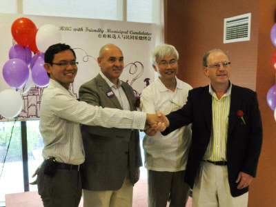 活動上,幾位候選人致詞并宣傳自己的政治愿景。李振光表示,身為華裔的一份子,他深刻地認識到華裔社區(qū)是多倫多市的一份重要力量,他愿為多倫多華裔爭取更多的福利和優(yōu)待。史振民說,士嘉堡地區(qū)華裔很多,他計劃擴展多倫多現(xiàn)有的地鐵線路,將增設(shè)包括士嘉堡地區(qū)在內(nèi)的多條路線,以方便廣大市民出行。鄭永強說,社區(qū)服務(wù)中心的力量不容忽視,如孟嘗會這樣的組織,為社區(qū)群眾提供了高質(zhì)量的服務(wù),使政府的工作更加便利,是值得贊揚的。