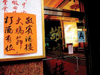 據(jù)敬賓酒樓的業(yè)者介紹,雖然近日才貼出告示,但火雞節(jié)宴席的預(yù)訂其實(shí)早在一年前就開(kāi)始,目前僅中午12點(diǎn)開(kāi)始的早場(chǎng)還有桌位可供預(yù)訂,下午3點(diǎn)開(kāi)始的午場(chǎng)和晚上6點(diǎn)開(kāi)始的晚場(chǎng)宴席早就一搶而空。在閩籍鄉(xiāng)親集中的小區(qū),每年的感恩節(jié)都是酒樓生意最旺的時(shí)候,去年感恩節(jié)敬賓酒樓所接做的宴席便逾100場(chǎng)。