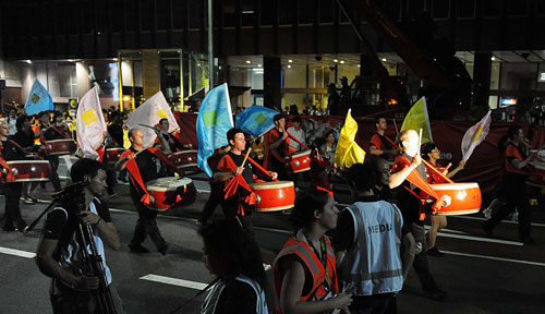 中新網(wǎng)2月23日電 當(dāng)?shù)貢r(shí)間2月21日晚,華燈初上,澳大利亞悉尼市中心一片歡騰。這是悉尼為慶祝中國(guó)春節(jié)而舉辦的全球最大新年花車大巡游。巡游隊(duì)伍中“文化中國(guó)•四海同春”紅鼓彩旗方隊(duì)大放異彩。
