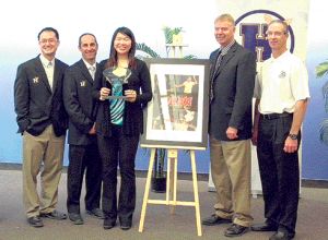 在坎伯學(xué)院20日專門為葉惠恩舉行的頒獎儀式上,葉惠恩從安省學(xué)院運動協(xié)會(OCAA)行政總監(jiān)Blair Webster的手中,接過協(xié)會每年僅頒發(fā)給一名女運動員和一名男運動員的年度運動員獎項。據(jù)坎伯學(xué)院運動體育總監(jiān)Doug Fox介紹,本獎項是很少由新生獲得,葉惠恩也是該校首個獲此獎項的新生。