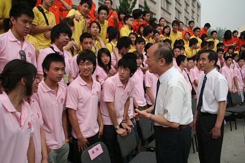 中新網(wǎng)7月22日電(董方) 北京華文學(xué)院2009年暑期漢語(yǔ)夏令營(yíng)活動(dòng)自7月初正式拉開(kāi)帷幕以來(lái),吸引了來(lái)自法國(guó)、意大利、英國(guó)、美國(guó)等歐美國(guó)家和印尼、泰國(guó)等東南亞國(guó)家的6個(gè)團(tuán)隊(duì)共225名華裔青少年參加。7月22日早上,身著夏令營(yíng)服裝的學(xué)生們?cè)缭缇途奂趯W(xué)校的操場(chǎng)上,由于身處不同的團(tuán)隊(duì),學(xué)員們大都互不相識(shí),然而大家都按耐不住激動(dòng)的心情,因?yàn)榫驮谶@里他們將留下第一張“全家!。