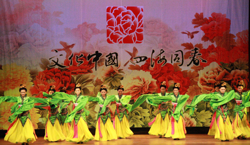中新網(wǎng)3月1日大阪電(記者關(guān)妍)3月1日晚,擁有九十余年歷史的大阪中央公會(huì)堂流光溢彩,氣氛熱烈。中國(guó)國(guó)務(wù)院僑辦2010年春節(jié)“文化中國(guó)•四海同春”藝術(shù)團(tuán)當(dāng)晚在這里舉行隆重演出,為觀眾帶來(lái)一場(chǎng)原汁原味的中國(guó)特色歌舞盛會(huì)。