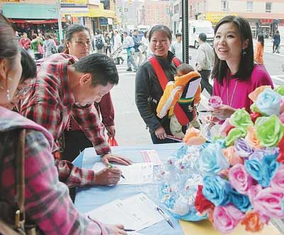 華策會小區(qū)拓展計(jì)劃十多名義工當(dāng)日下午在華埠愛烈治街、科西街和地威臣街的交匯處,免費(fèi)派發(fā)由MISSTA禮品店贊助的玫瑰花,同時(shí)對閩籍新移民進(jìn)行題為“單身的你,想‘脫光’了嗎?”的問卷調(diào)查,了解新移民的感情狀況。