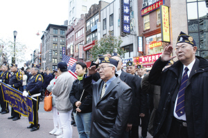 中新網(wǎng)11月13日電 據(jù)美國(guó)《僑報(bào)》報(bào)道,11日是退伍軍人節(jié),紐約華裔美國(guó)退伍軍人會(huì)今年首次參加紐約退伍軍人大游行。今年是第90屆游行,參加過二戰(zhàn)、越南戰(zhàn)爭(zhēng)、海灣戰(zhàn)爭(zhēng)的華裔退伍軍人們身穿制服,充滿自豪感地參與這次游行,一路上接受民眾的致敬和歡呼。
