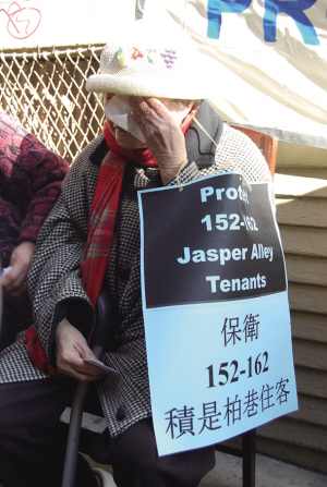 中新網(wǎng)1月18日電 據(jù)美國(guó)《僑報(bào)周末》報(bào)道,2009年歲末,舊金山北岸區(qū)Jasper街的一棟老樓公寓外,居住在這里幾十年、八名年齡在69至89歲的華裔租客以及眾多支持者,在寒風(fēng)中抗議《艾利斯法案》逼遷,誓言保衛(wèi)家園。