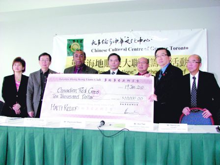 在當(dāng)日記者會(huì)上,多個(gè)機(jī)構(gòu)以不同方式為海地大地震賑災(zāi):湛山精舍捐款1.5萬(wàn)元﹑多倫多香港獅子會(huì)捐款1萬(wàn)元﹑多倫多雅賢獅子會(huì)5000元﹑多倫多柏麗獅子會(huì)5000元等。而也有團(tuán)體則以攤位義賣(mài)物品﹑發(fā)動(dòng)會(huì)員捐獻(xiàn)……務(wù)求盡一分力﹑發(fā)一分光,幫助海地災(zāi)民早日恢復(fù)正常生活。