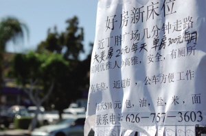 “家庭小旅館”房東最忌諱的是房客使用“家庭小旅館”的地址作通信地址,這樣會暴露住所內入住人數(shù),也會給國稅局留下追繳稅款的憑證。到“家庭小旅館”租床位的人,多數(shù)無車,這便鼓勵了無照經(jīng)營的出租車行業(yè)。在“家庭小旅館”周圍商業(yè)區(qū)的電線桿、留言板上到處可看到“地下的哥”留的字條或名片。有些“的哥”為了讓自己的名字被記住還動了不少腦筋,如有人自稱“沈陽飛姐”,此人寫在名片上的廣告是“想回家,找飛姐”。蒙特利公園市附近常租用“地下出租車”的,不少人都知道有位專門安排住宿、接送客人的“飛姐”。