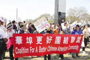 全美最大的亞裔團(tuán)體之一美華協(xié)會(huì)的執(zhí)行長吳中鈞在接受僑報(bào)記者專訪時(shí)表示,僅美華協(xié)會(huì)就組織了300多人前來參加,在亞裔團(tuán)體中組織的華人人數(shù)最多。吳中鈞說:“我們要提醒奧巴馬政府和國會(huì):不能忘記綜合移民改革,今年必須通過移民改革法案!彼赋,醫(yī)保改革固然重要,但對(duì)于少數(shù)族裔來說,移民改革同樣重要,是我們每天都要想到的事情。亞裔和華人社區(qū)要與其它族裔團(tuán)結(jié)起來,才能使自己的訴求被決策者聽到。