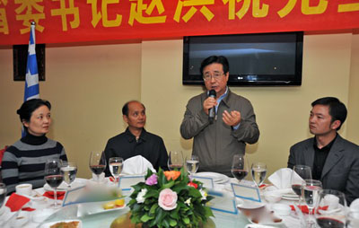 趙書記給浙江籍旅希僑胞帶來(lái)了浙江省委省政府和全省人民的親切問(wèn)候,稱贊他們?cè)谥С直本⿰W運(yùn)會(huì)圣火在希臘取火傳遞、支援四川抗震救災(zāi)、為希臘森林火災(zāi)和困難兒童捐款捐物等行動(dòng)中,體現(xiàn)出僑民心系祖國(guó)發(fā)展、積極融入希臘、建設(shè)模范僑區(qū)的優(yōu)良精神風(fēng)貌。他和大家一起深情回顧了新中國(guó)建國(guó)60年、改革開(kāi)放30多年來(lái)取得的輝煌成就,對(duì)僑胞們?cè)谙ED艱苦創(chuàng)業(yè)十余年取得的豐碩成果表示祝賀。