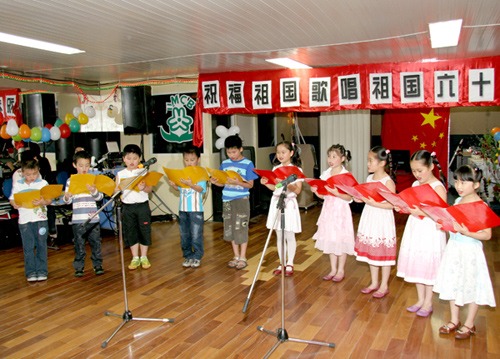 當天的聯(lián)歡會上,婦女會的姐妹們表演了新創(chuàng)作排練的腰鼓舞蹈,育才學(xué)園小朋友們表演了集體詩朗誦,趙永平、惠青等朗誦了《祖國我愛你》長詩。在王燕文小姐領(lǐng)唱下,全體與會人員還起立演唱了歌唱祖國的大合唱。隨后,趙永平會長、孫總領(lǐng)事以及與共和國同齡的姐妹們一起切開了慶祝祖國六十周年的生日蛋糕。