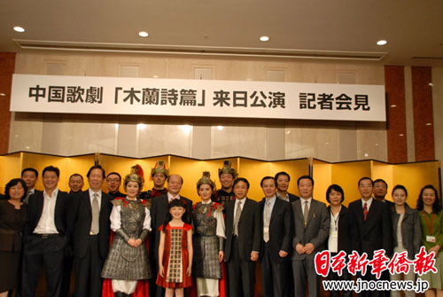顏安原為中國人民解放軍總政治部歌舞團(tuán)演員,走出國門以后一直從事中日文化交流活動(dòng)。11月10日上午,他與剛剛抵達(dá)日本東京的本次出訪團(tuán)副團(tuán)長李福祥等共同主辦“中國歌劇《木蘭詩篇》新聞發(fā)布會(huì)”。