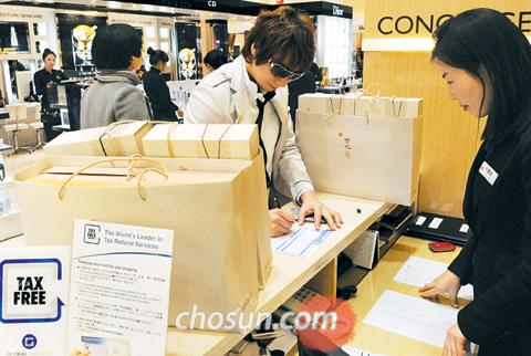 “這個(gè)肯定是真貨吧?”韓國(guó)首爾新世界百貨商店總店的外國(guó)人“退稅(tax refund)”柜臺(tái)前擠滿了中國(guó)人。一位顧客拿著一塊閃閃發(fā)光的名牌手表給百貨商店的漢語(yǔ)翻譯看并詢(xún)問(wèn)。